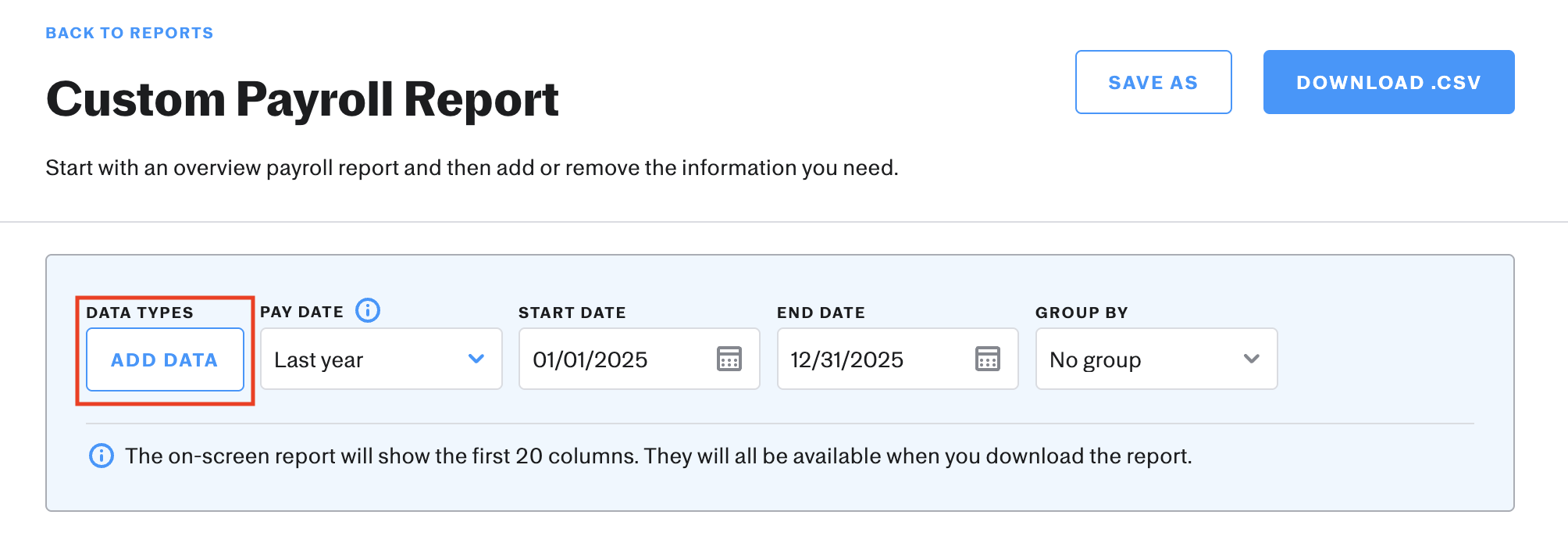Please note that the custom payroll report shows information specific to the pay date not the pay period. A single pay date can encompass multiple pay periods if you pay weekly but process two weeks at once.