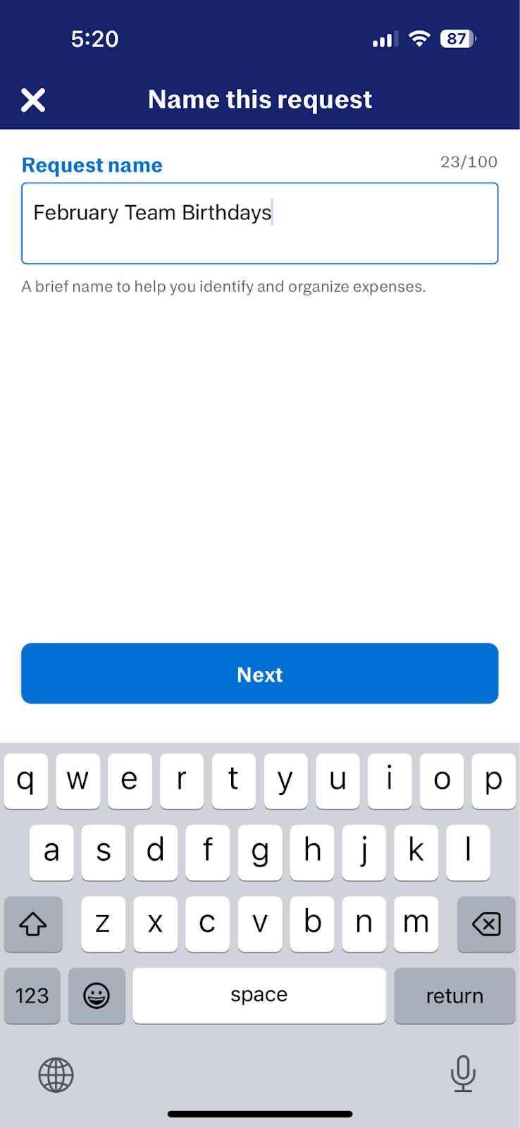 - Enter a name for your request and tap Next.