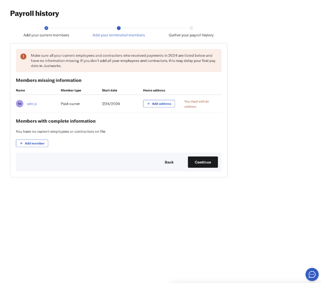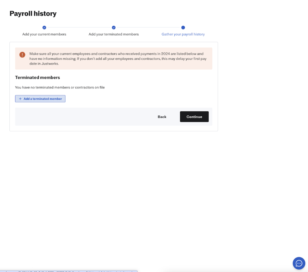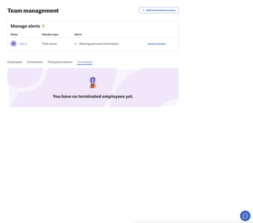 If you forget to add any terminated members with payroll history during your initial onboarding steps, you can still add terminated members to your company’s account.
