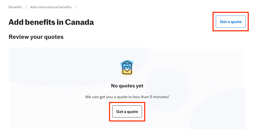 You’ll be prompted to “Get a quote” before making benefit selections. Quotes are based on employee salary and show estimated costs for the full suite of Canadian benefits.