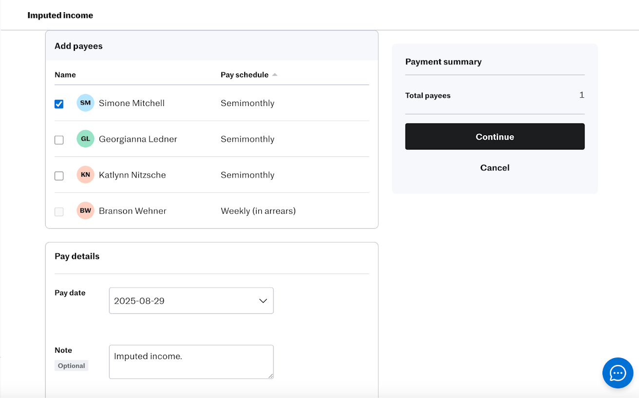 If you need to make changes to imputed income that’s already been recorded, you will be able to do so as long as it’s before the processing date of the payroll it’s included in. You can follow the steps for updating a one-time payment to edit or delete the imputed income amount.