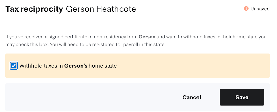 If an employee works in one state, but lives in another state, they may be eligible for certain tax exemptions through state tax reciprocity. State tax reciprocity refers to agreements between two states that allow residents of one state to request exemption from state withholdings so that they’re only paying taxes to the state they live in.