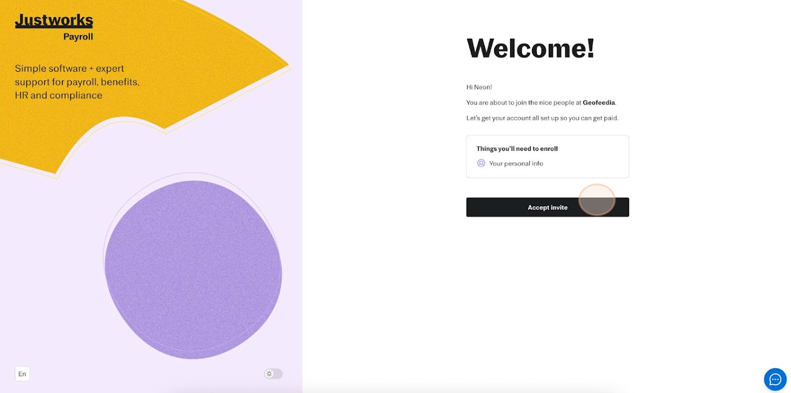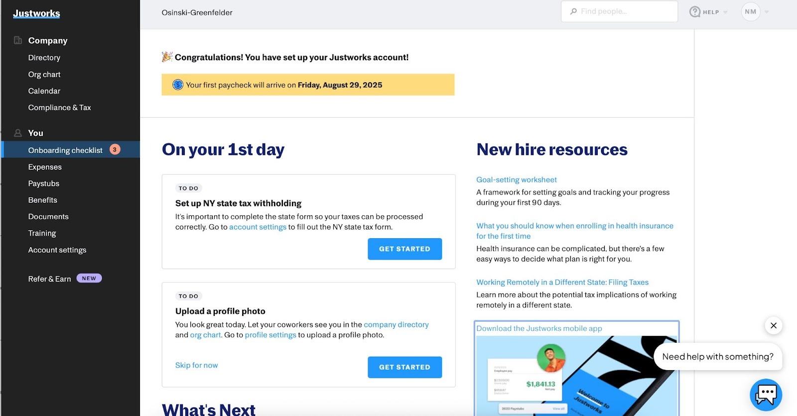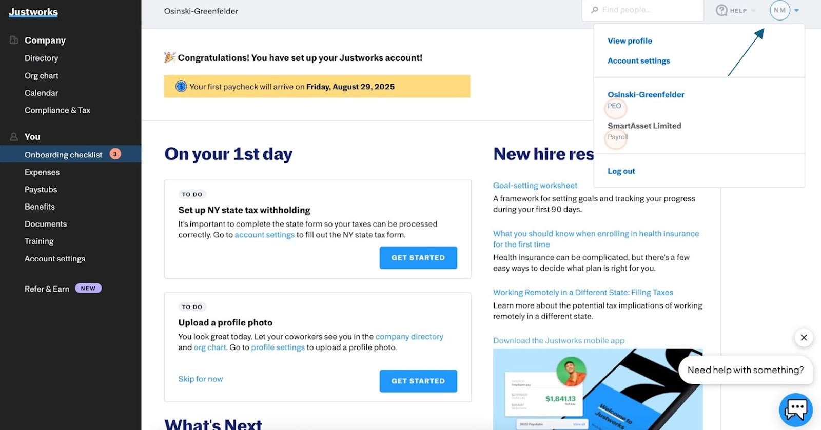 4. Access Your New Payroll Account: After logging in, you’ll be taken to the Justworks Payroll home screen for your new company.