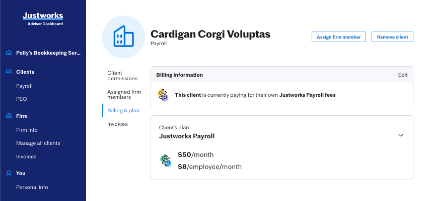- Choose whether Justworks or your firm should be billed for that client’s payroll.